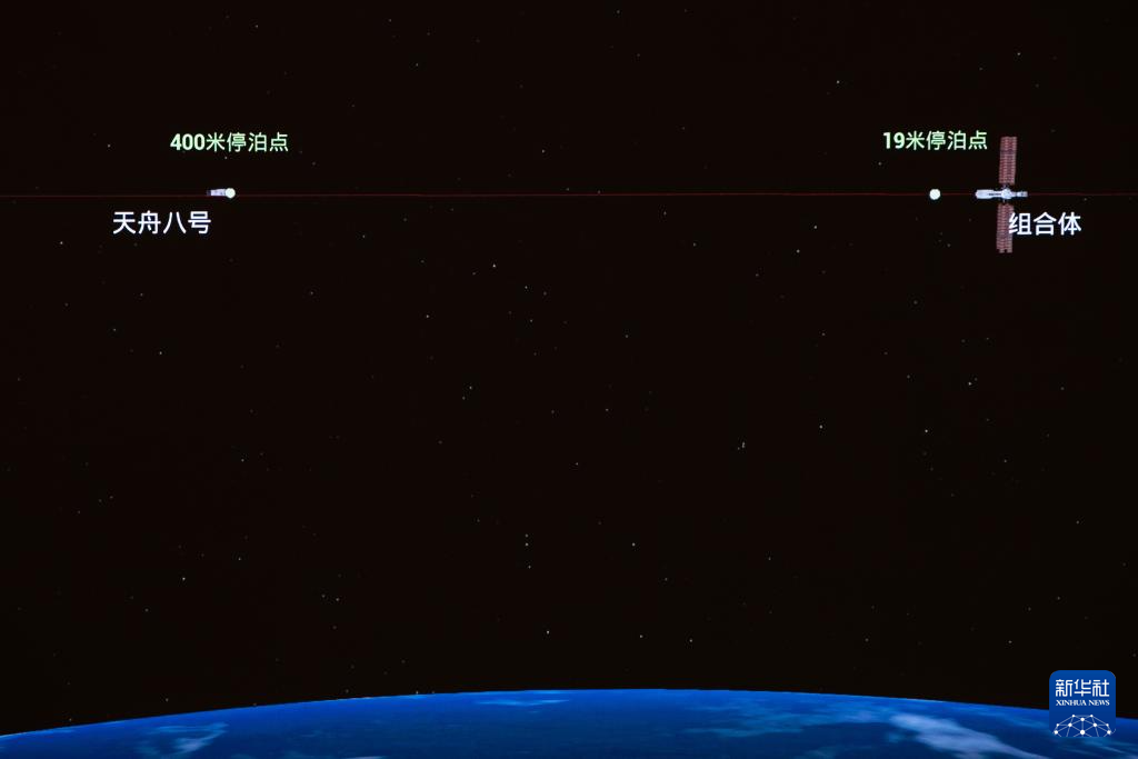11月16日在北京航天飞行控制中心拍摄的天舟八号货运飞船向空间站组合体靠拢的画面。新华社发(韩启扬 摄)
