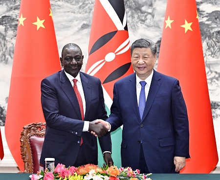 ① 24日上午,习近平在北京人民大会堂同来华进行国事访问的肯尼亚总统鲁托举行会谈。两国元首一致同意将双边关系定位提升至新时代中肯命运共同体。