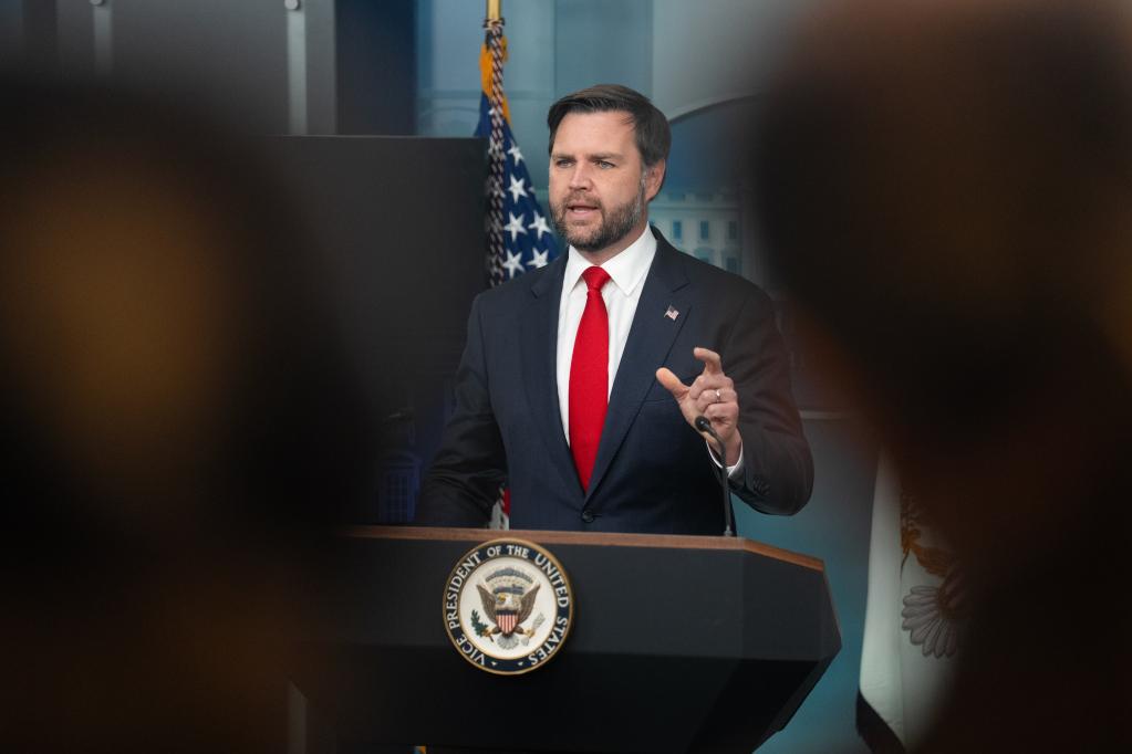 10月1日,在美国首都华盛顿白宫,美国副总统万斯回答记者提问。新华社记者胡友松摄