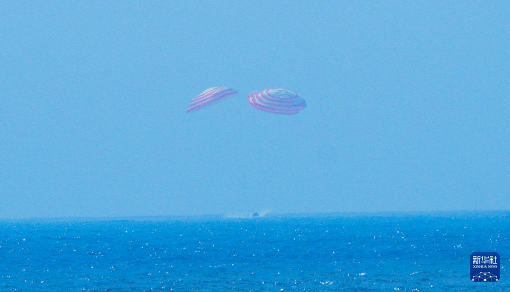 2月11日,梦舟载人飞船返回舱按程序受控安全溅落于预定海域。新华社发(王衡 摄)