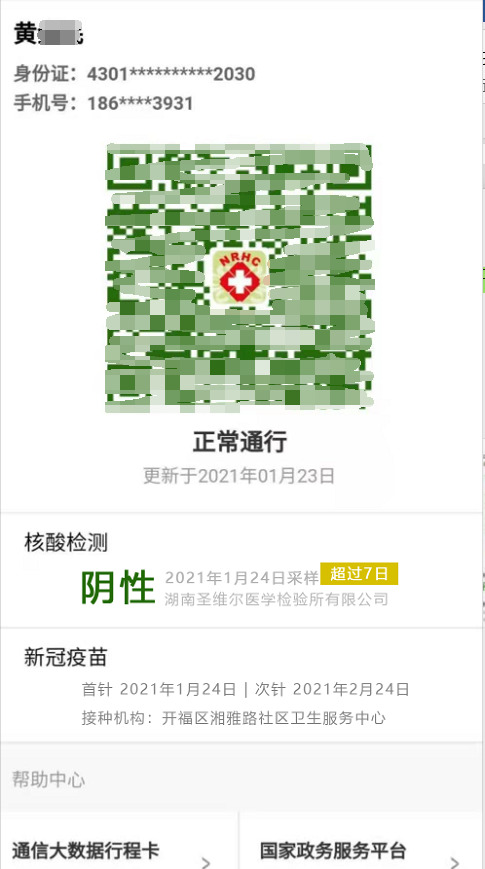 即日起,在“健康码”下方同屏显示居民核酸检测时间、结果等信息,居民在“湖南省居民健康卡”微信公众号上即可一键实现核酸检测预约、查询和新冠疫苗接种证明查询功能。
