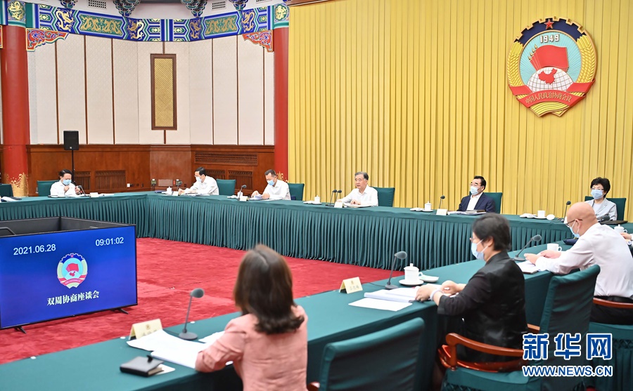 3.近日,全国政协召开双周协商座谈会,围绕“社会救助法的制定”协商议政。汪洋主持。