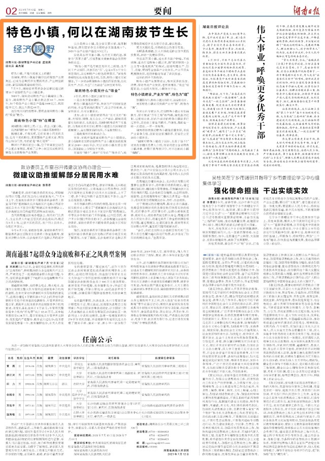 7月9日,湖南省委常委会会议审议通过新增10个省级特色产业小镇名单。