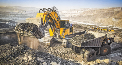 在内蒙古自治区鄂尔多斯黑岱沟煤矿,700吨矿用液压挖掘机正在施工。这是徐工自主研制的大吨位液压挖掘机,拥有自主专利50余项,包括10项发明专利。它主要用于国内外大型露天矿山开采施工,标志着中国成为世界上继德国、日本、美国后,第四个具备700吨级以上液压挖掘机研发制造能力的国家。