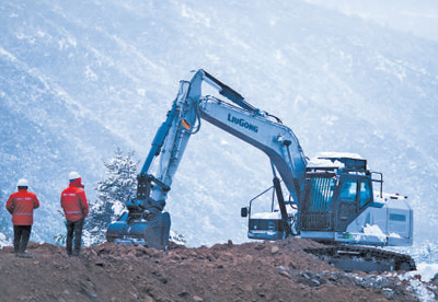 川藏铁路施工现场,柳工纯电动挖掘机在施工作业。近年来柳工开展新能源工程机械领域技术探索和产品研制。纯电动工程机械具有零尾气排放、噪声低、生产效率高等优势,目前已广泛应用于隧道、矿山等极限工况领域。