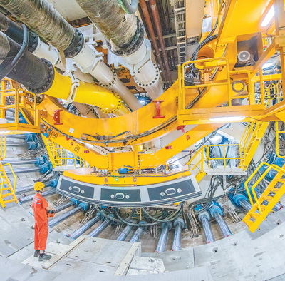 中国铁建自主研制的超大直径盾构机“京华号”正服务于北京东六环入地改造工程,已顺利穿越多个重大风险源,创造了542米的超大直径盾构机月进尺世界纪录。“京华号”首创研发的多项技术填补我国科技空白,可全面提升隧道施工质量,标志着我国超大直径盾构机技术跻身世界前列。