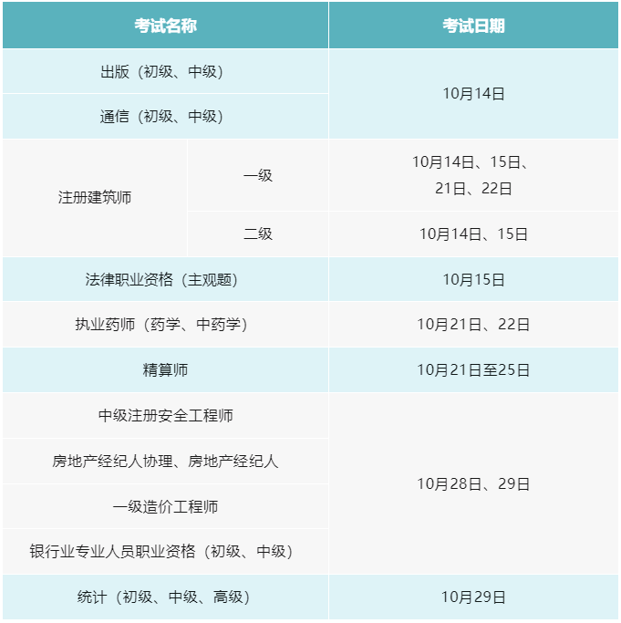 人社部10月专业技术人员职业资格考试时间表来了,戳图看详情↓