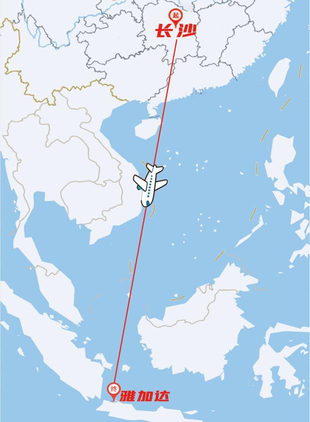 在多方合力助推下,长沙直飞雅加达的国际客运航线终于成功开通。每周执飞1班,“雅加达—长沙”每周一执飞,“长沙—雅加达”每周二执飞,飞行时长约5.5小时。目前,这趟航线往返平均客座率达85%。