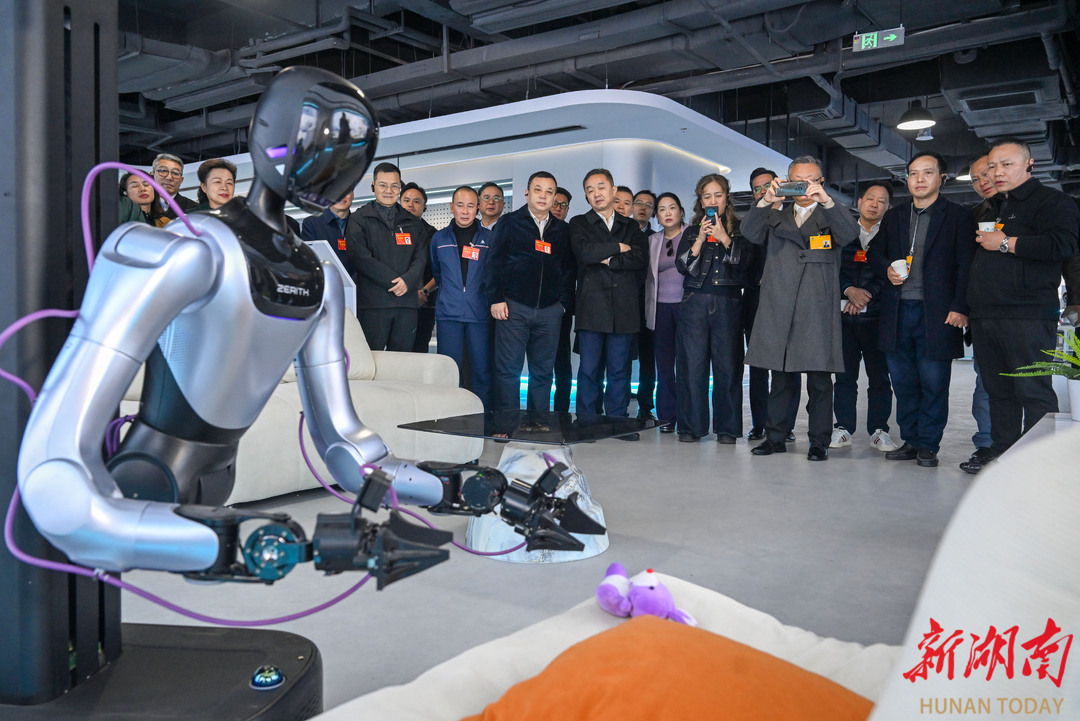 2月2日下午,港澳地区湖南省政协委员和列席会议的海外侨胞组成的视察团,踏着暖阳走进长沙经开区,先后探访中国铁建重工、湖南具身智能创新中心和麦格米特全球研发中心。