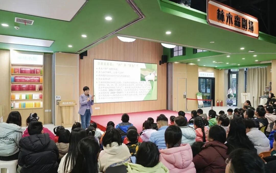 省政协十三届四次会议闭幕后翌日,省政协常委、省作协主席汤素兰便来到笨狼家·林木森书店,参加“笨狼窝窝暖冬读·家风如叙”寒假亲子阅读系列活动,她以“一起《犇向绿心》——整本书阅读的方法与策略”为主题,为读者带来一场充满温度的阅读指导课。她还特别分享了《犇向绿心》背后长达12年的创作心路——从童年记忆里“爷爷的牛”,到紫鹊界梯田带来的震撼,再到对乡土变迁与儿童成长的持续思考,让这部作品成为“一首唱给故乡的情歌,一封写给孩子未来的信”。