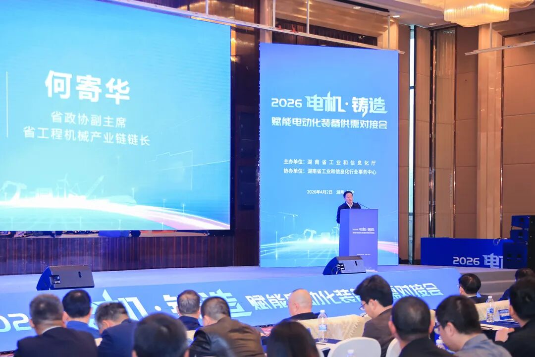 今天(4月2日)上午,2026电机·铸造赋能电动化装备供需对接会在长沙举行。省政协副主席、省工程机械产业链链长何寄华出席并讲话。