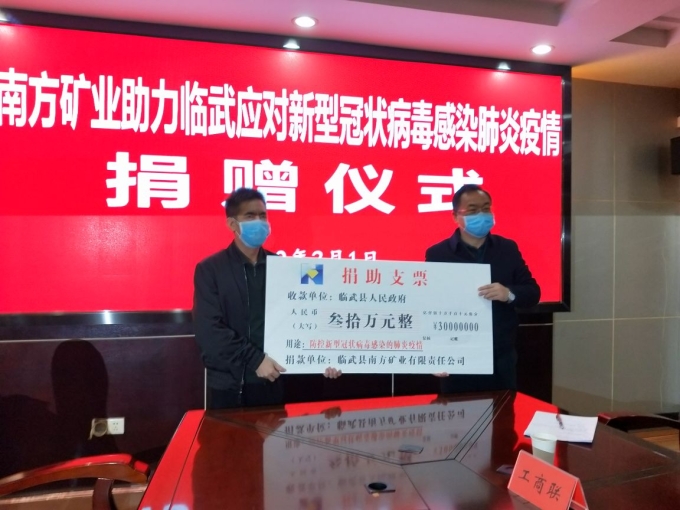 作为临武经济发展的支柱企业,南方矿业公司始终践行企业宗旨,勇于承担社会责任,为社会做贡献,为人民群众服务。疫情防控期间,南方矿业公司把防控疫情、阻击疫情作为当前最重要的工作,要求公司全体员工积极做好自身防疫,想方设法控制疫情蔓延。同时,心系临武疫情防控一线,积极支持地方政府抗击疫情。在捐赠仪式上,尹柏生表示,面对疫情作为企业绝不能袖手旁观,作为市政协委员必须承担社会责任,与党委政府同德同心同向,共克时艰。