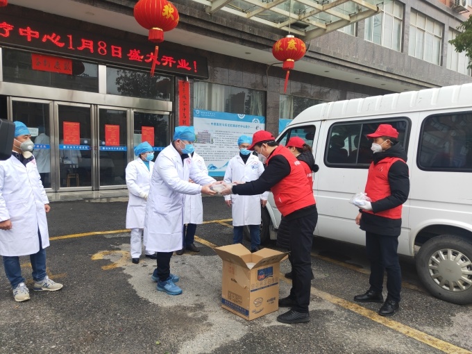 小家庭餐饮公司志愿者将一碗碗刚出炉,还冒着热气的爱心汤圆送到值守在防疫一线的公安、交警、城管、医务等工作人员手中,让他们在忙碌的岗位上喝上一碗热汤,为一线“防疫人”送去元宵节的美好祝福。