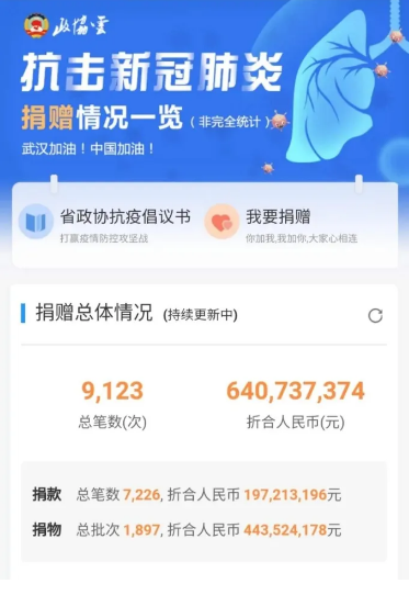 抗“疫”期间,除了奋战前线的医护人员外,还有后方遍布各行各业的强大支援力量。全国人民众志成城、齐心协力,彰显了中华民族同舟共济、守望相助的家国情怀。截至3月17日,湖南各级政协委员捐款捐物(折合)共计6.4亿。
