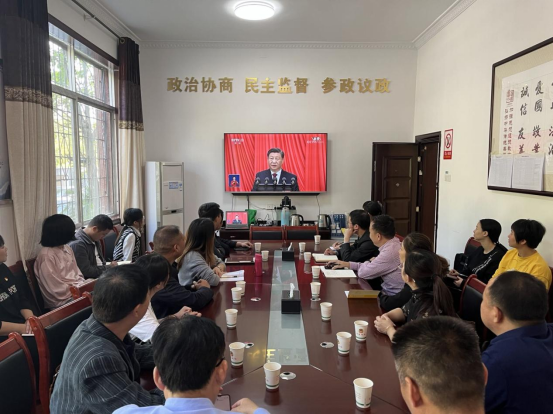 新田县政协组织机关干部集中收看党的二十大开幕会。
