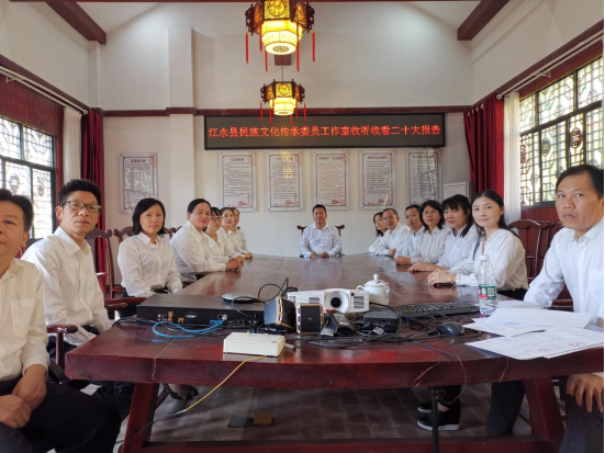 江永县民族文化传承委员工作室组织集中收看党的二十大开幕会。