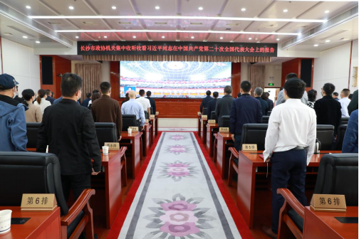 10月16日上午,长沙市政协组织机关全体干部职工集中收看中国共产党第二十次全国代表大会开幕会实况。