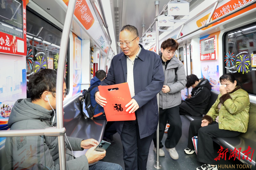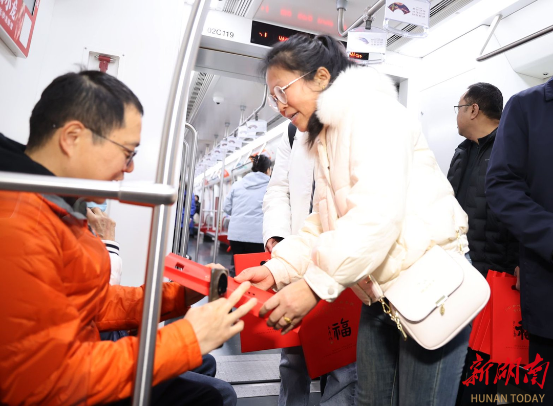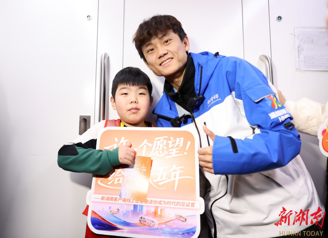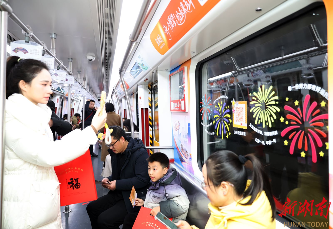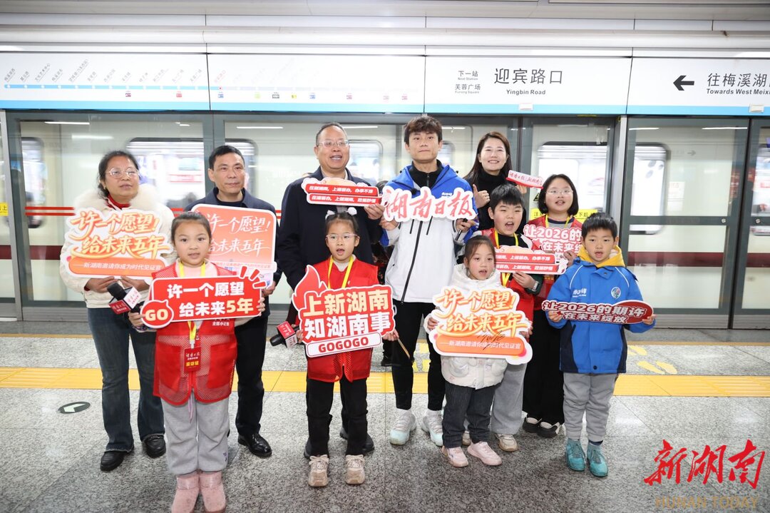 今天上午,长沙地铁2号线的车厢被欢声笑语填满,由新湖南客户端联合湖南亚文传媒打造的新湖南“许一个愿望,给未来5年”地铁列车满载市民心愿出发!省人大代表李召霞、余国才,省政协委员苏孝群,以及湘超永州队球员高响化身“心愿使者”,向乘客派送新春福袋,共赴一场与未来的温暖约定。