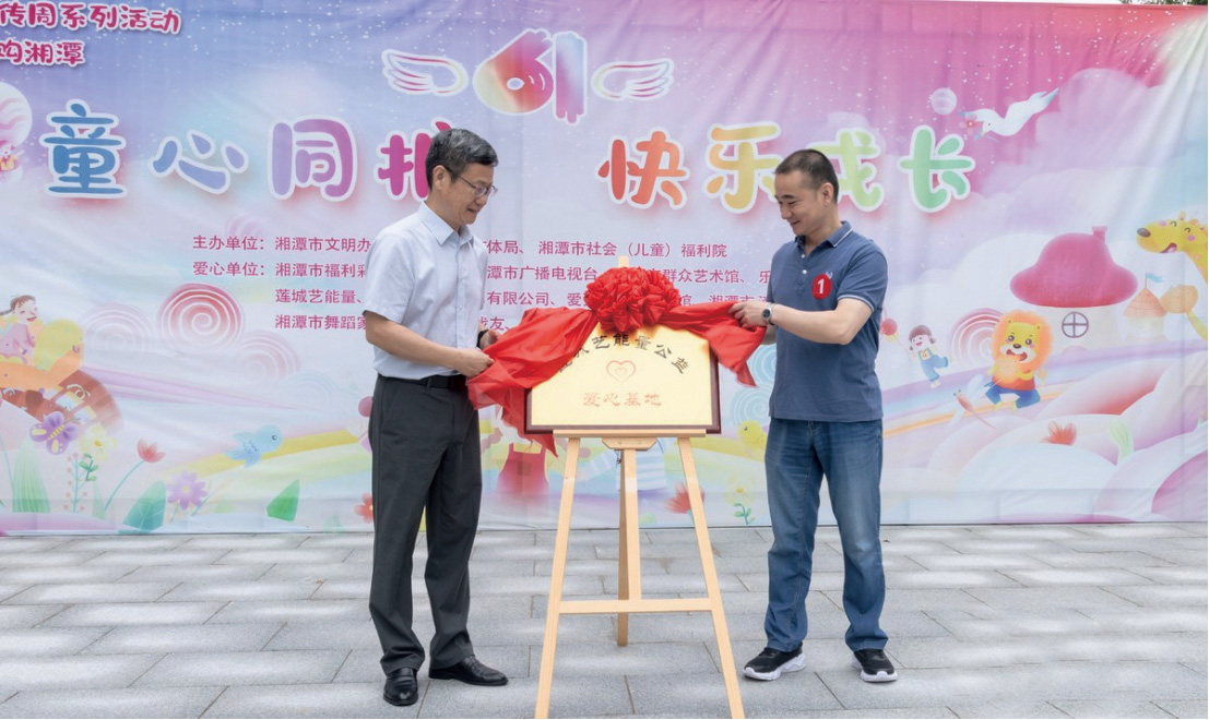 “莲城艺能量”公益爱心基地落户湘潭市社会(儿童)福利院(图左 熊耀宽)。
