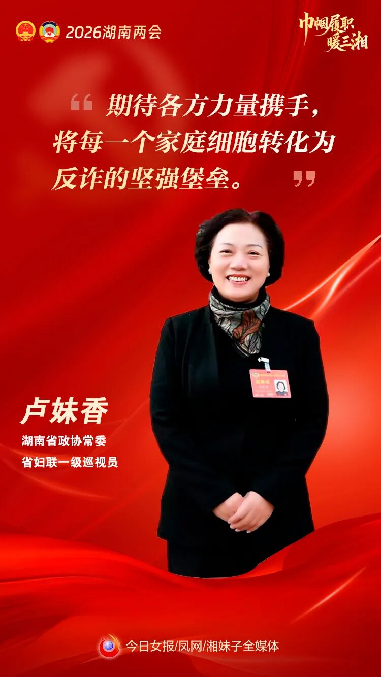 “我的履职心声很朴素,就是做好一座桥——桥的一头连着妇女群众的期盼,一头连着建言资政的平台。”在2026年湖南省两会期间,省政协常委、省妇联一级巡视员卢妹香这样描述自己20多年的履职感悟。今年,她将目光聚焦于一个关乎众多家庭安宁的议题:如何系统提升妇女群体的反电诈意识与能力。