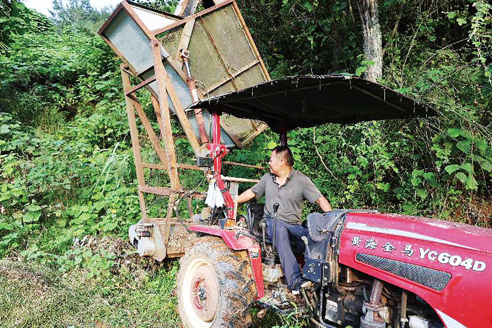 竹园坡村地处典型的喀斯特山区,耕地分散于丘陵沟壑之间。全村1315亩耕地中,超过90%属于坡地、碎地,机械化作业难度极大。2011年,刚担任村干部的钟卫峰自费购置了捡拾打捆机、粉碎还田机等10余台农用机械,并针对村里地形特点,自学改良了红薯藤刹秧回收粉碎机、农作物秸秆粉碎回收机等设备。
