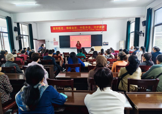 活动集结了永州市第一人民医院等优质医疗机构的专家力量。该院中医康复科主任许国恩带来的《中医体质辩证与养生》微课堂,刚开讲就点燃了现场热情。“我总觉得累,这种体质该怎么调?”“秋天吃点啥最养人?”长者们纷纷举手提问,眼神里满是期待。许主任结合PPT图文演示,用“枸杞泡水别贪多,每天10颗刚刚好”“按揉足三里像给脾胃‘充电’”等接地气的讲解,把晦涩的中医理论变成听得懂、用得上的养生妙招。不少长者一边认真听,一边用手机拍课件,还有人掏出笔记本记录,现场手机拍照的快门声与不时响起的提问声交织,显得格外热闹。