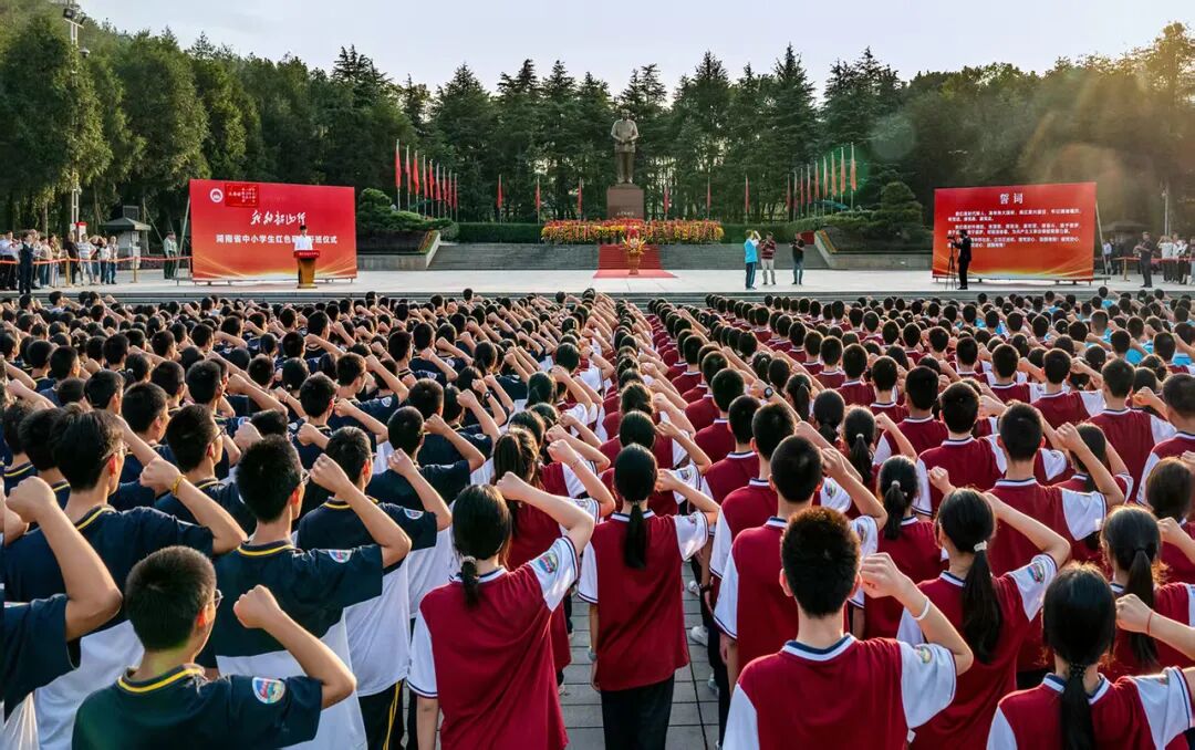“请党放心,强国有我!”在韶山毛泽东广场,来自湖南各地的中小学生高举右手,在广场庄重宣誓。研学团队奔走在各红色景点之间,聆听红色故事,追寻红色记忆。
