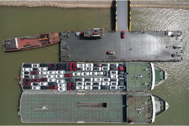 长沙港滚装码头商品车卸货忙。 湖南日报记者 童迪 通讯员 洪琳 摄影报道