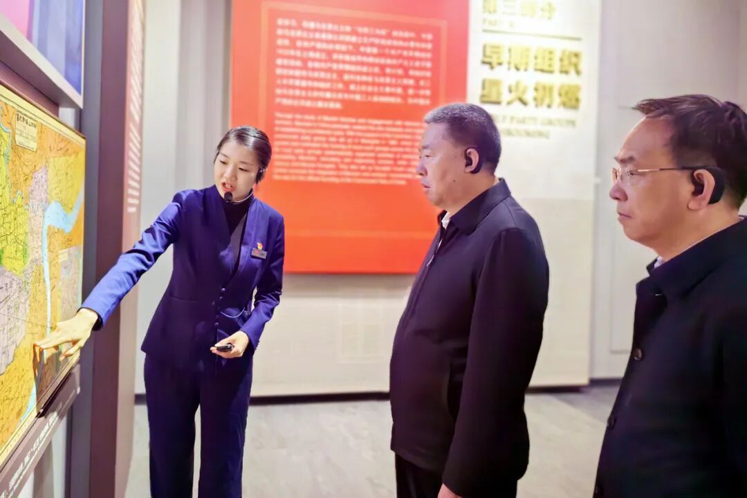 在中共一大纪念馆,调研组通过聆听讲解员的细致介绍、观摩馆内陈列的珍贵文物,重温了中国共产党的创建历程与革命年代的光辉岁月。近年来,中共一大纪念馆积极实施“科技+”战略,探索红色文化传播与科技融合机制,在文物保护、展示宣传和活化利用红色资源方面,推动数字化建设与纪念馆发展深度融合,让红色文化更加“活”起来、“火”起来。