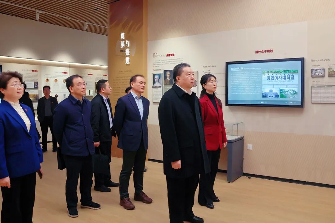 在臻美书院,调研组参观了学生非遗文化创新创业作品展示;在社会发展学院民生保障与数智康养实验教学中心、文学与传播学院数智媒体产教融合实训基地,调研组详细了解了学校在女性人才培养、特色学科建设、产教融合发展等方面的实践成效;在女性教育发展研究基地、全国首个校地共建的女书文化研究与展示基地,调研组听取了女性教育发展历程、女书文化传承发展等方面情况介绍。