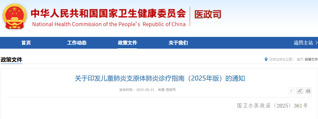 9月23日,国家卫生健康委办公厅、国家中医药局综合司发布《儿童肺炎支原体肺炎诊疗指南(2025年版)》。该指南在2023年版基础上进行了全面修订,与2023年版本相比,新版《指南》系统增加了中医药治疗方案。