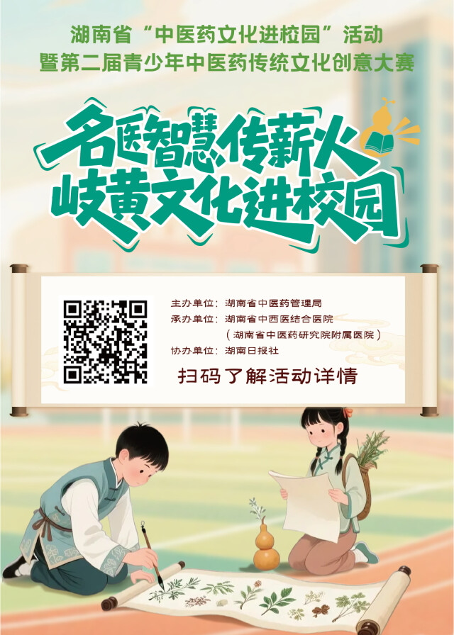 想让你的创意为中医药文化“焕新”吗?想收获荣誉证书还有文创好礼吗?好消息来啦——由湖南省中医药管理局主办、湖南省中西医结合医院承办、湖南日报社协办的“湖南省第二届青少年中医药传统文化创意大赛”今天正式启动了!即日起,面向全省中小学生征集优秀作品,用画笔、创意讲好中医药故事。作品征集时间持续至11月5日。