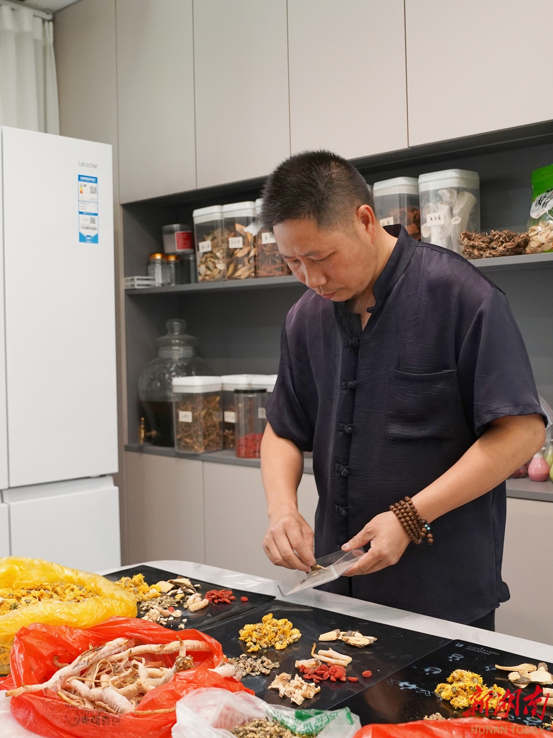 徐梅生为来访者配置药膳。