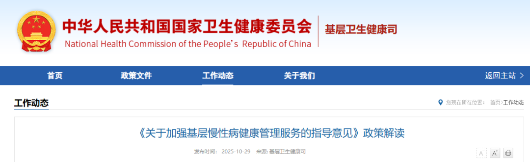 近日,国家卫生健康委会同国家发展改革委、财政部、国家医保局、国家中医药局、国家疾控局5部门制定并印发《关于加强基层慢性病健康管理服务的指导意见》(以下简称《指导意见》)。现对《指导意见》有关情况解读如下。