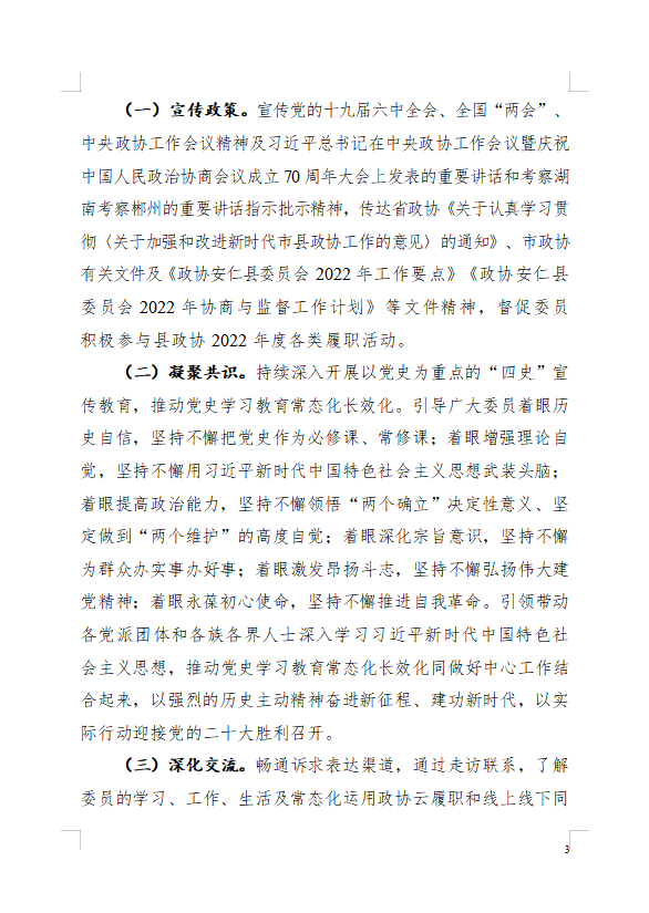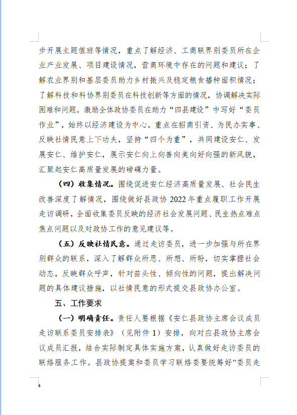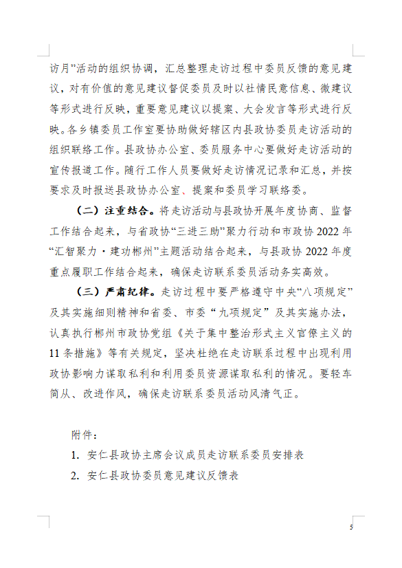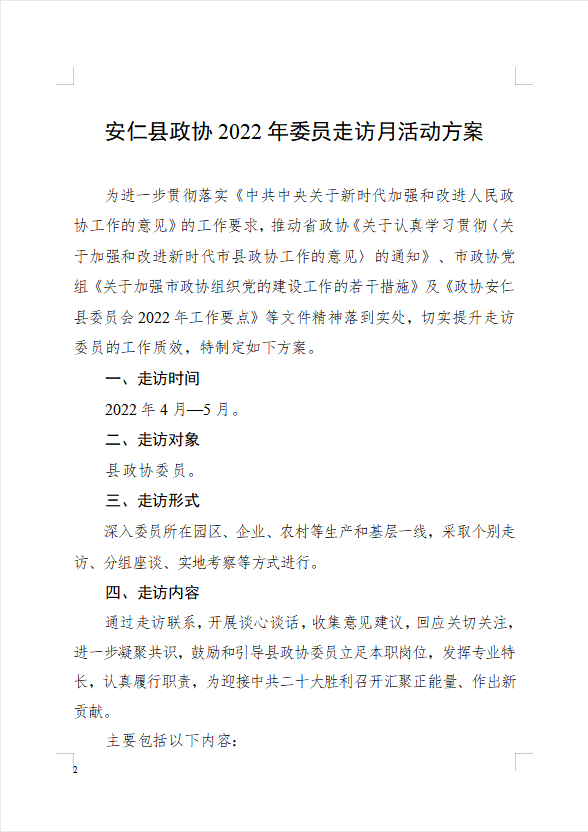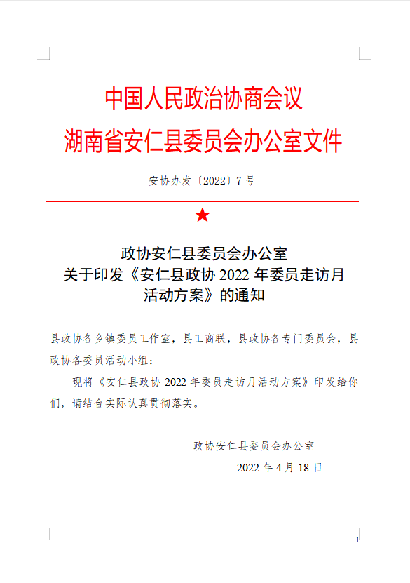关于印发《安仁县政协2022年委员走访月活动方案》的通知