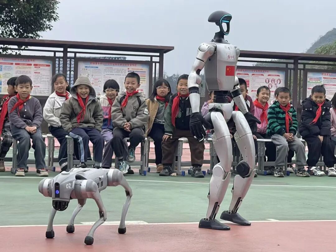 机器人活动自如,机器狗调皮可爱……溆浦县舒溶溪乡中心小学迎来了一堂别开生面的科学启蒙课,课程不是熟悉的语文数学,而是创想未来的科技展示。