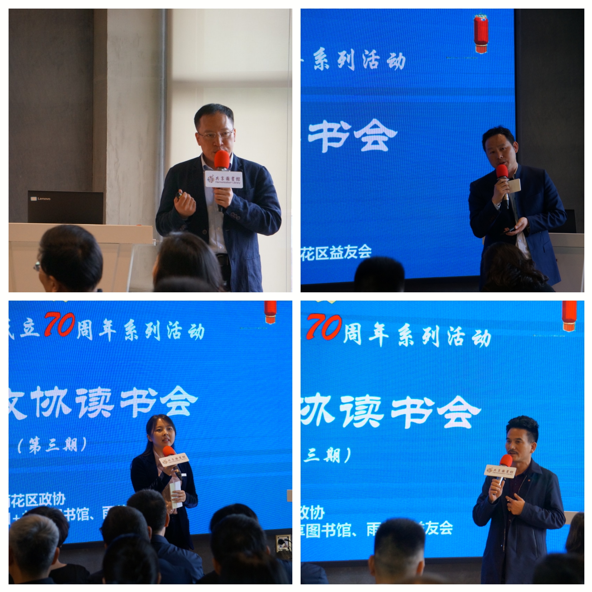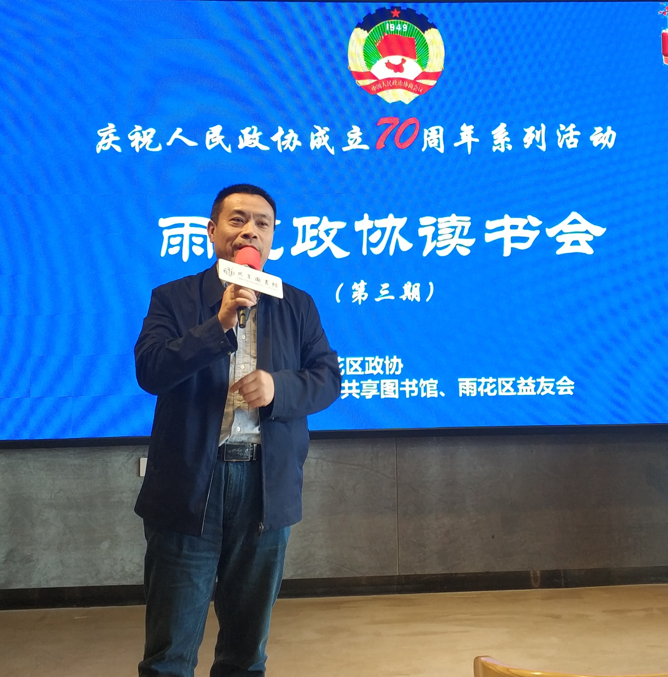 最后,冯聪龙满怀深情地发表感言。他认为,“雨花政协读书会”是全区政协系统的思想政治引领平台,是雨花政协人学习交流、亮声发声的互动平台。他希望,雨花政协人能咬定一个向上的目标,打造一个更优的平台,激发和凝聚更多的力量。在不断加强政治建设的同时,通过组织更多更好的活动,双向发力,不断提升建言咨政的水平,广泛凝聚共识与力量,用政协人的政治高度、知识渊度和满满的正能量,为服务人民群众想到细处、落到实处,以更加扎实的工作成效向人民政协成立70周年献礼。