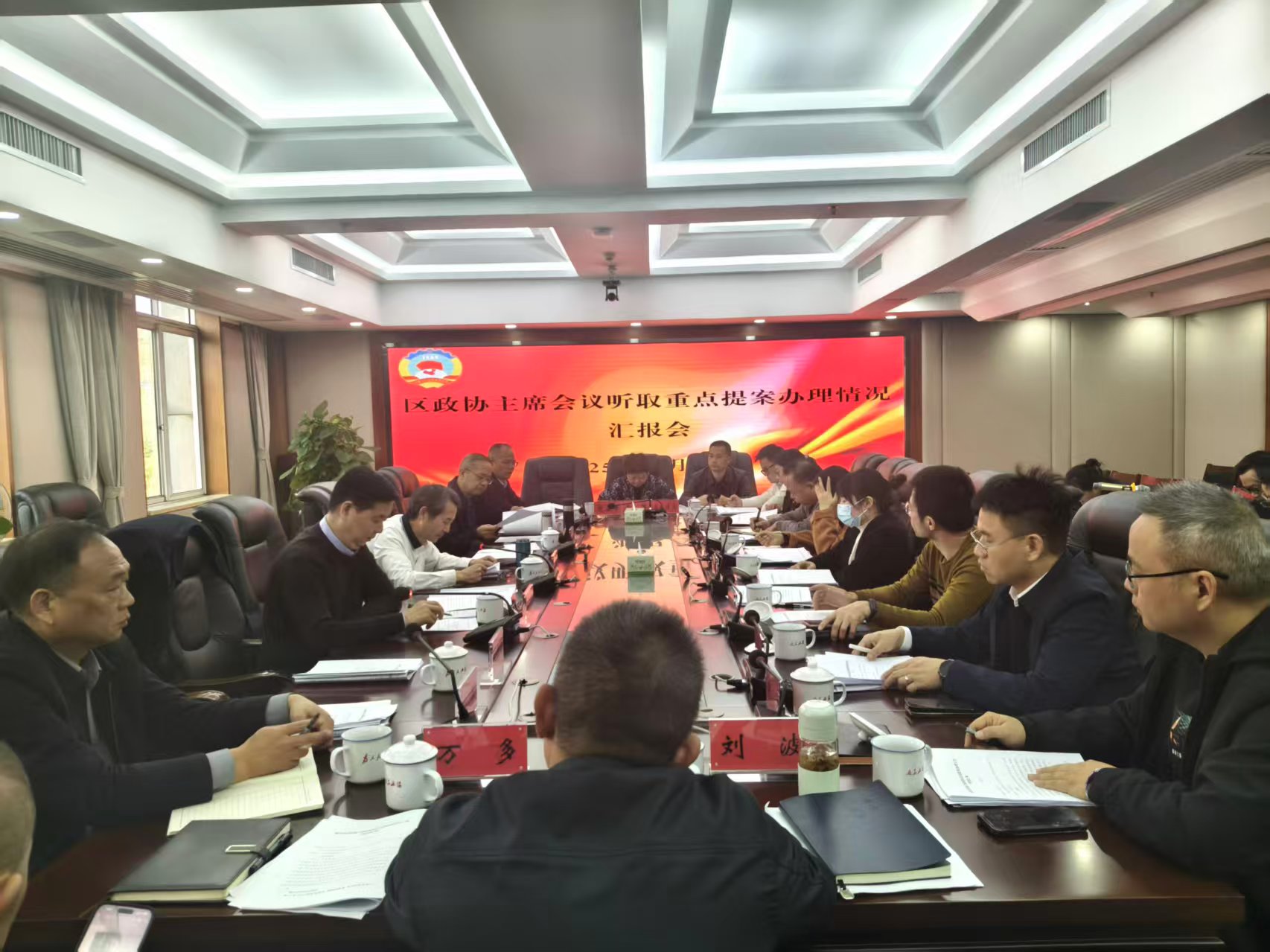 区政协副主席周凌云、吴海军、王润虎出席会议,区政协党组成员、副主席周建雄主持会议,区政协各委室负责人参加了会议。