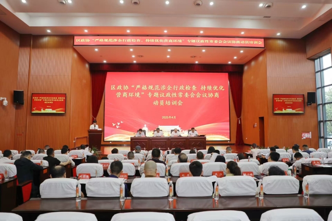 4月23日,区政协召开“严格规范涉企行政检查,持续优化营商环境”专题议政性常委会会议协商动员培训会议。区政协主席李雪龙,区政协副主席向章平,区政协党组成员丁四明,区政协秘书长李勇出席会议。
