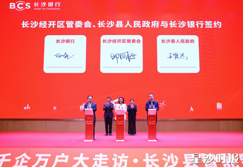 张曼在致辞中表示,长沙银行在2003年就设立长沙银行星城支行专门服务长沙县经济高质量发展,双方的情谊源远流长。下一步,长沙银行将以“长行担当”赋能星沙高质量发展,积极参与构建“政银企”协同机制,为星沙注入更多金融动能;以“长行生态”助力全产业链条升级,打造覆盖企业初创、成长、成熟全生命周期服务矩阵,为企业发展引入金融活水;以“长行速度”全方位响应企业需求,让企业“少跑腿”、服务“加速度”,推动融资和时间成本双“降低”。