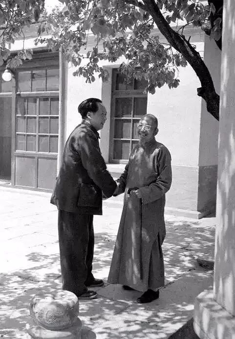 ▲1949年5月,毛泽东在北京香山双清别墅会见柳亚子