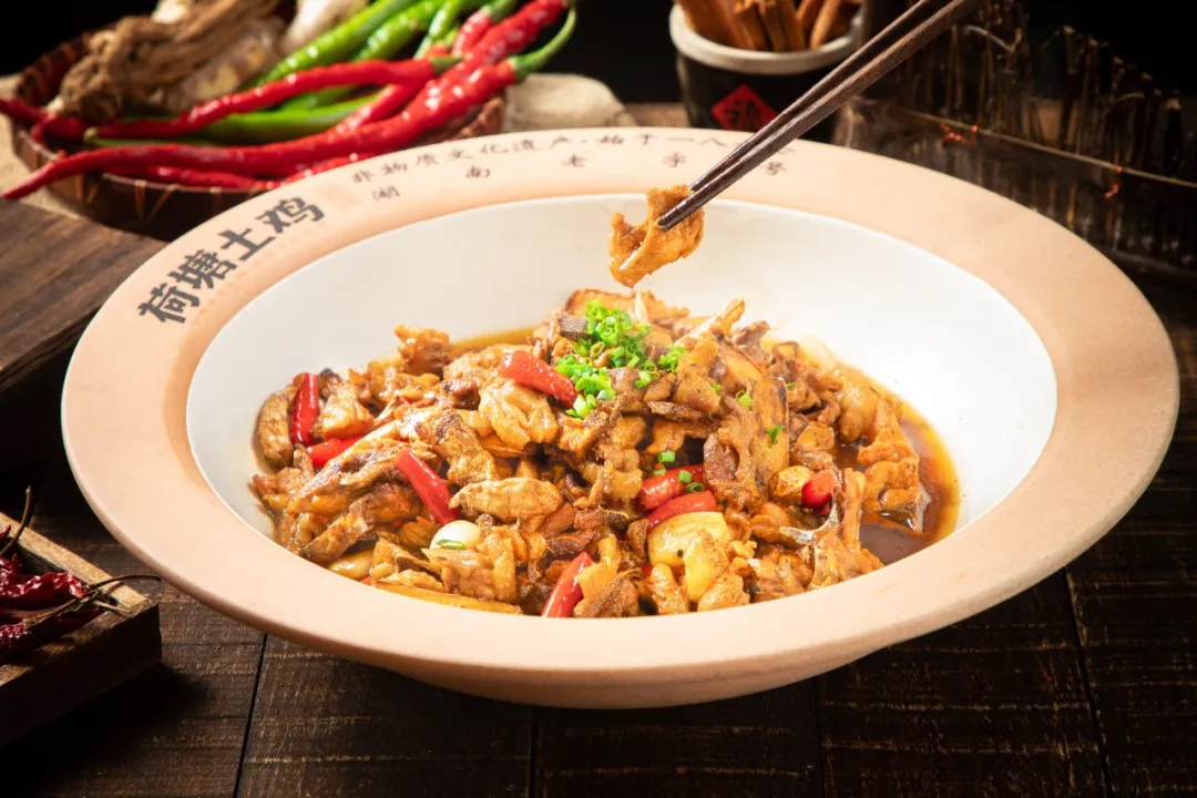 2.荷塘土鸡(金霞山店):药膳炖鸡、剁椒炒鸡。