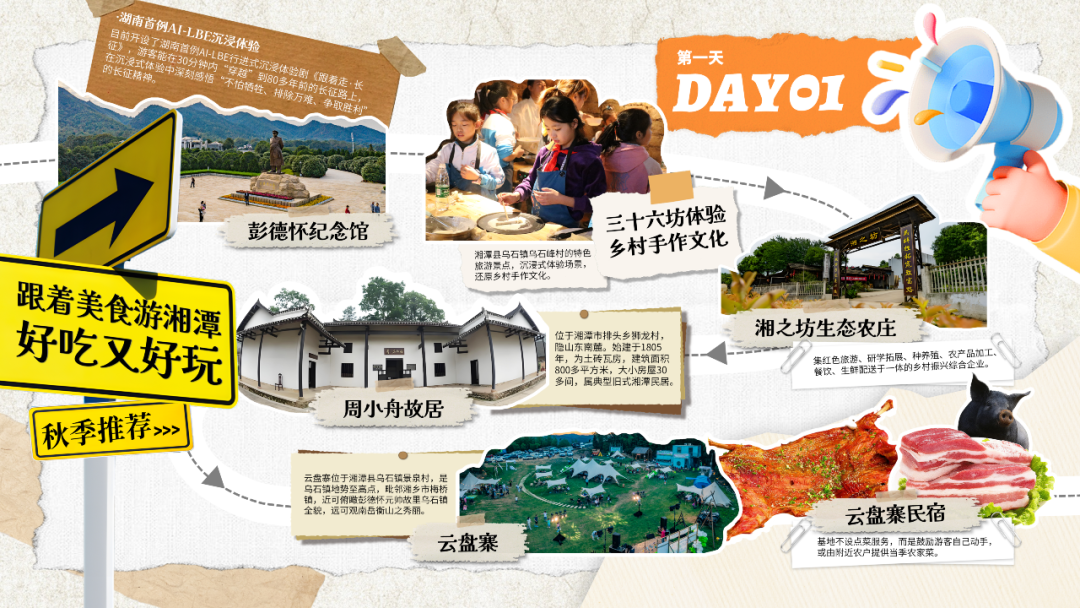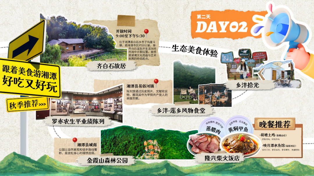2.齐白石纪念馆(周一闭馆):重点参观齐白石专题展,寻找画作中的湘潭饮食元素,体验简笔水墨画互动。