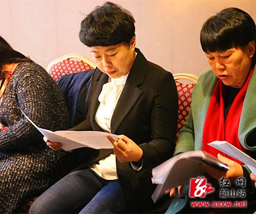 正在看报告的贺晓庆(左)
