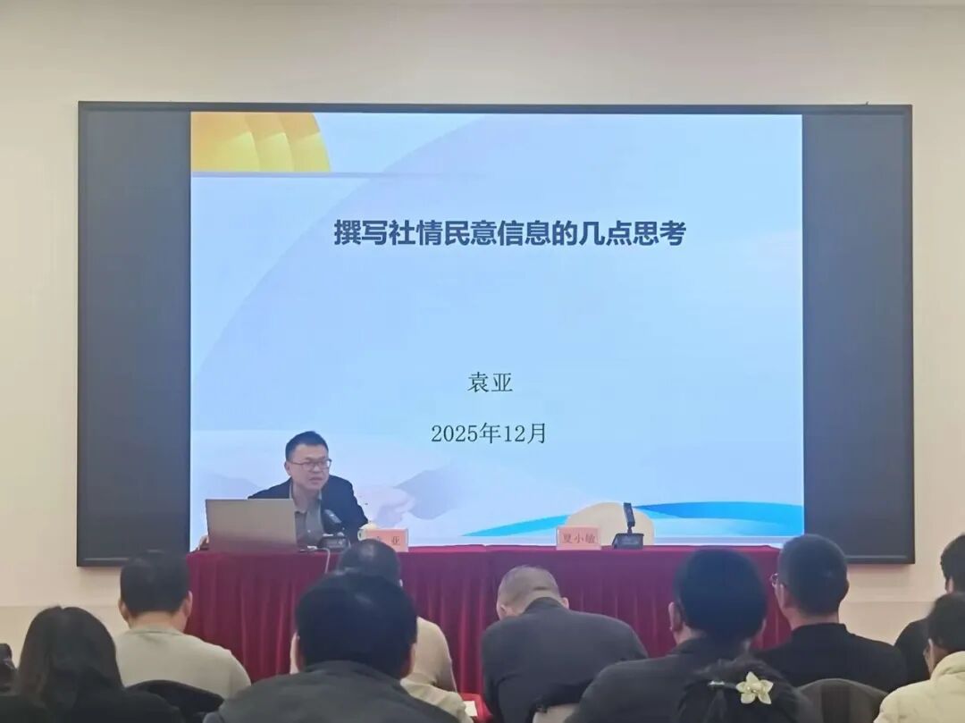袁亚以《撰写社情民意信息的几点思考》为题,从小切口、好角度、及时性、专业性、冷门问题分析选题方向,在工作、生活、时政、媒体中寻找信息来源,详解信息行文规范并佐以实例。