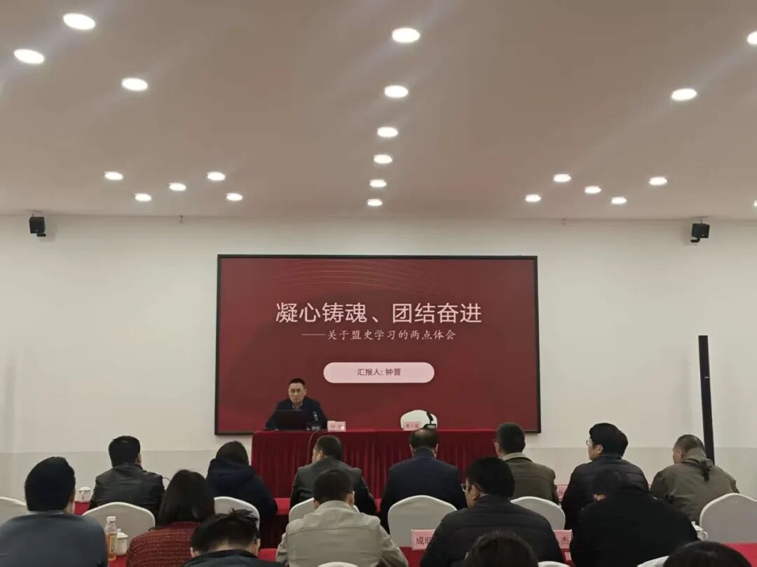 钟晋为新老盟员开展盟史、盟纪宣讲,他从几位民盟先贤出发,引申出整个民盟组织从初创到改组、从艰苦环境中坚持斗争到社会主义建设中共创辉煌的壮丽篇章,深情回顾民盟同中国共产党风雨同舟、共克时艰的历史伟业。