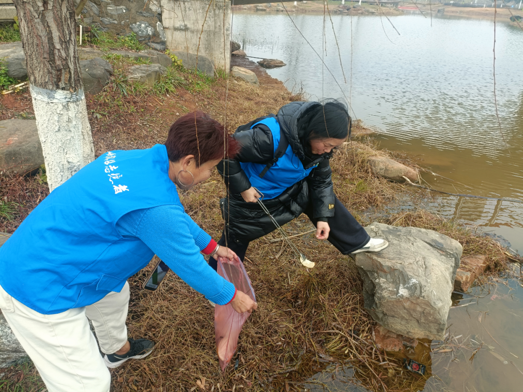 冬日的湖边,寒风凛冽,但志愿者们却干得热火朝天。志愿者们分成若干小组,沿着百亩湖岸线有序展开清理工作。他们不放过任何一个角落,无论是隐藏在草丛中的塑料瓶、烟头,还是卡在石缝里的包装袋、泡沫,都被一一“揪”了出来。