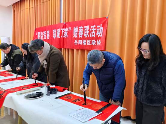 为弘扬中华优秀传统文化,营造欢乐祥和的新春氛围,切实把温暖送到群众心坎上,1月29日上午,岳阳楼区政协在五里牌街道运通街社区办公楼前停车坪,开展“墨韵贺春 联暖万家”赠春联活动。区政协副主席邓群政出席活动,区政协相关委室负责人、五里牌街道相关领导、区政协委员、区美术家协会知名书法家及社区居民参加活动。