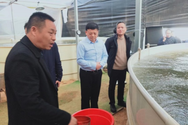▲ 考察分宜镇万溪工厂化养鱼基地