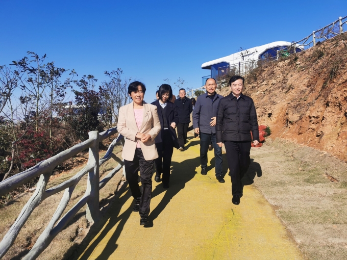 在五尖山国家森林公园,何祚云一行查看了五尖山林场文旅融合项目建设进度和林长制重点工作落实情况。